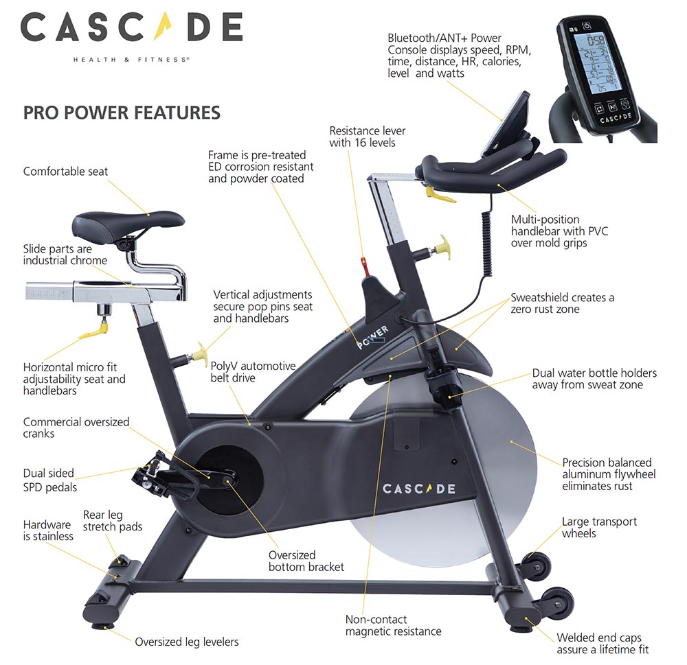 CONSOLE: Power – Watts, Heart Rate - Current, Average & Maximum, Calories – Kcal